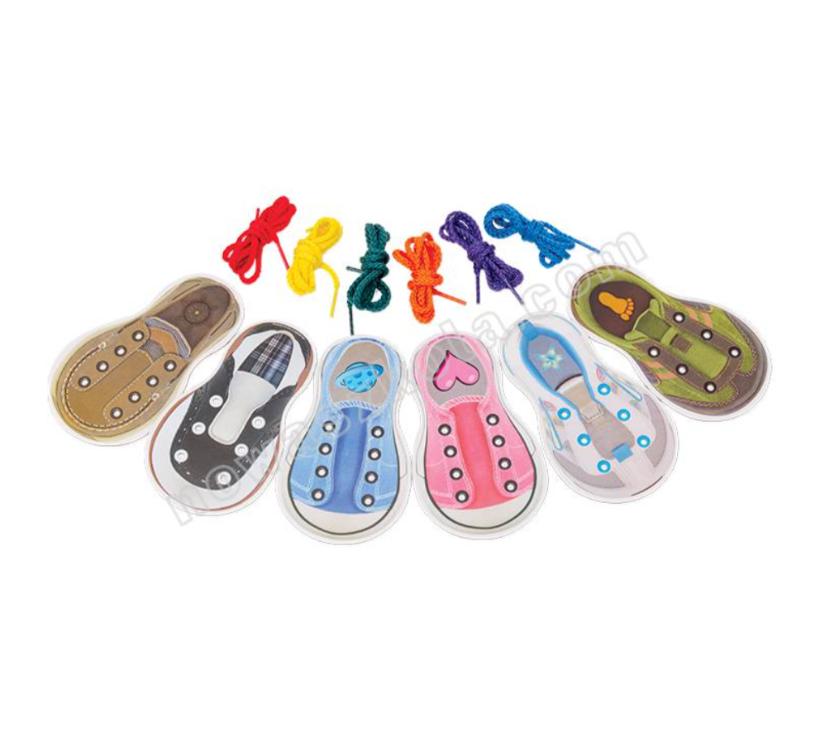 Zabavan set za učenje vezanja cipela. Idealno za razvoj fine motorike i koordinacije oko-ruka. Sadrži šarene radne kartice u obliku cipela i vezica sa sigurnim plastičnim vrhovima. Obogaćen slikovnim uputama, omogućuje aktivaciju djece koja još nisu savladala vještinu čitanja.