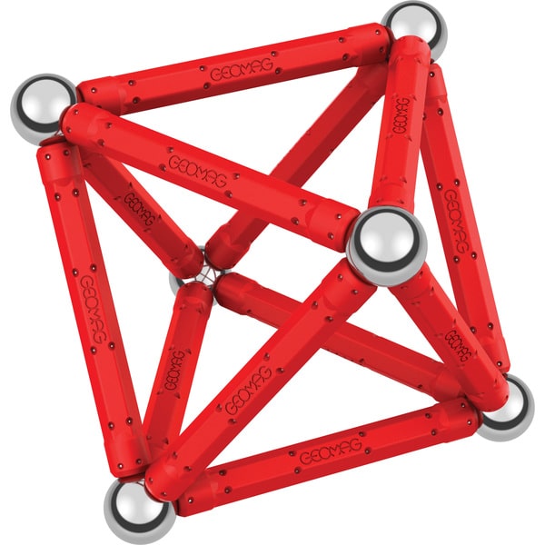 Set za igru ​​uključuje 12 crvenih magnetskih šipki, 12 metalnih kugli. Uključena je 1 Geomag kutija.