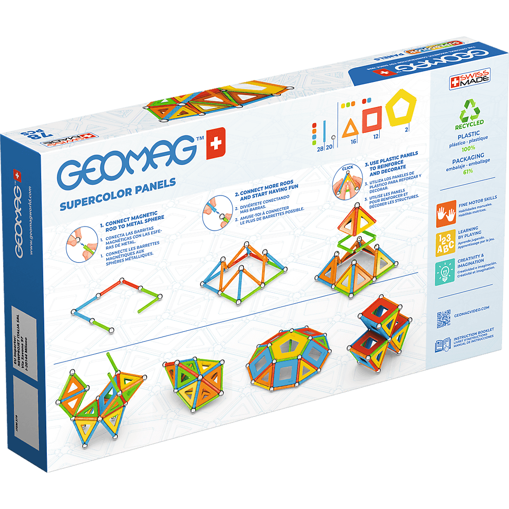 GEOMAG platforma omogućuje vam izgradnju beskrajnih 3D struktura, zahvaljujući magičnim silama magnetizma, oslobađajući kreativnost i maštu tijekom igre. Magnetske šipke, čelične kugle i paneli različitih oblika čine sustav zabavne magnetske konstrukcije. Geomag se proizvodi od 100% reciklirane plastike i sada je doista ekološki prihvatljiva igračka.