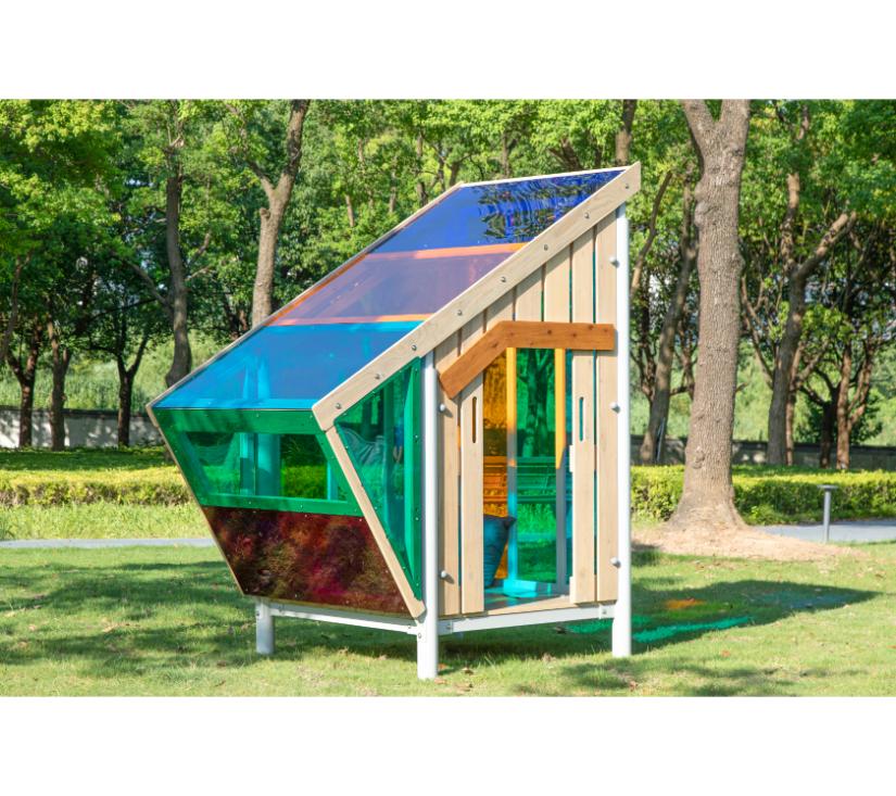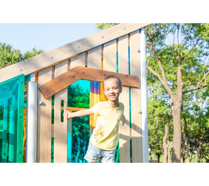 Vanjska šarena kućica za igru idealan je dodatak svakom dječjem igralištu ili prostoru vrtića. Dizajnirana da potiče igru, maštu i istraživanje, kućica pruža sigurno i veselo okruženje za djecu. Podnica je izrađena od izdržljivog robinia drva, koje je poznato po otpornosti na vremenske uvjete i prirodnoj estetici. Zidovi i krov izrađeni su od šarenih polikarbonatnih panela koji su otporni na UV zrake i prikladni za dječju upotrebu. Konstrukcija kućice je čvrsto postavljena u tlo kako bi se osigurala maksimalna stabilnost i sigurnost tijekom svakodnevne igre.
