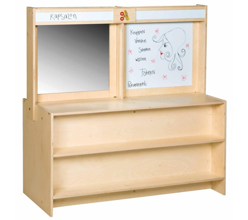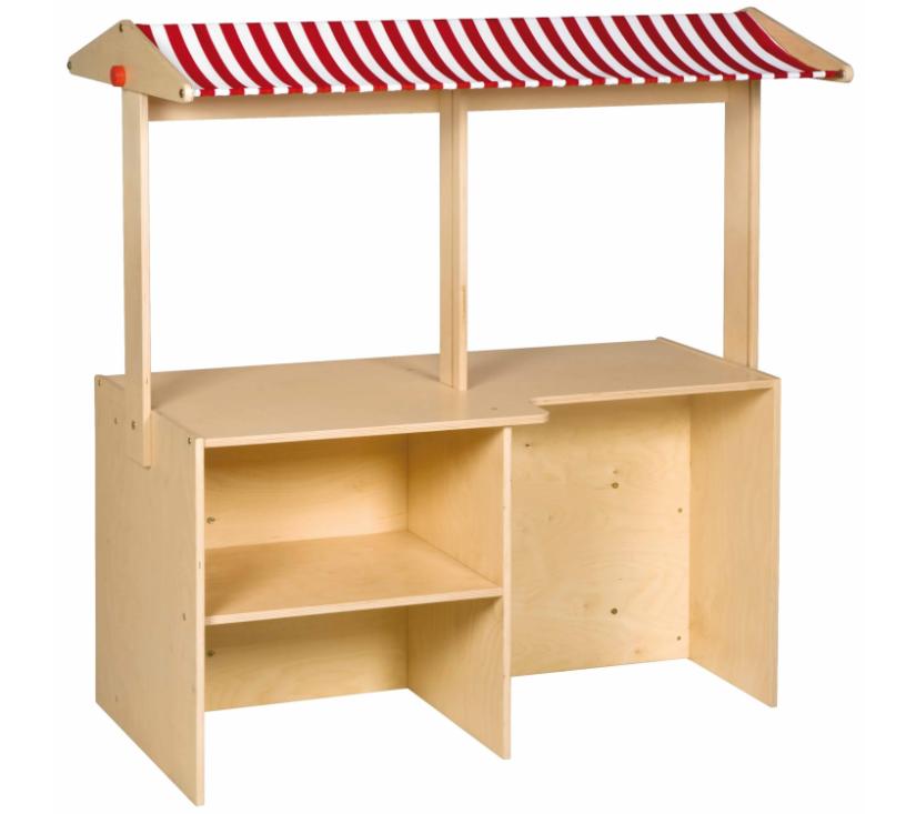 Ova višenamjenska igraonica potiče maštovitu igru i lako se prilagođava različitim temama poput trgovine, salona ili banke. Sadrži osnovni element namještaja te dodatke kao što su pult s prozorom, nadstrešnica za štand, ogledalo, zid za pisanje i magnetska greda. Proizvod dolazi za samostalno sastavljanje, izrađen je od ekološki prihvatljivog drva i praktične je veličine za dječju igru.
