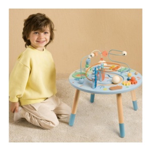 Drvena slagalica u obliku sata gdje djeca uče o brojevima i vremenu. Pokazivači se mogu micati, a brojevi vaditi iz utora pa na taj način djeca moraju staviti svaku brojku na svoje mjesto.