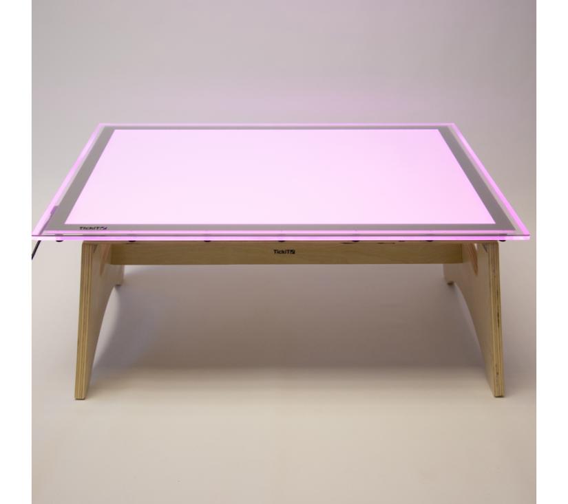 Niski stol dolazi u kompletu s A2 svjetlosnom pločom koja mijenja boje i jednostavno se postavlja na gornju površinu. Stol ima preklopne noge koje se sigurno učvršćuju pomoću imbus ključa.